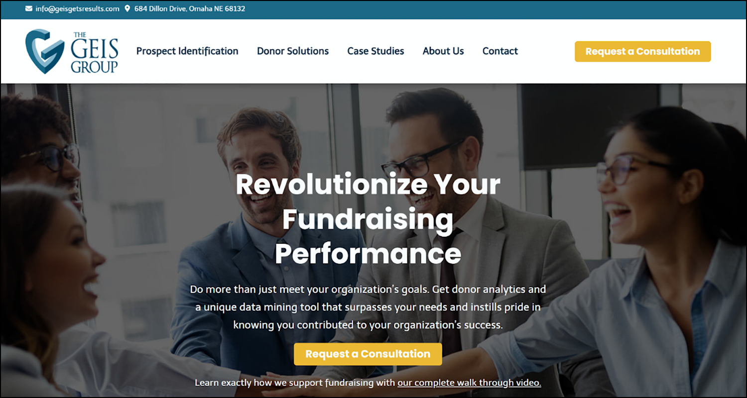 The Geis Group approaches fundraising from a data-driven perspective. When you work with them, you access insightful donor analytics and a unique data mining tool that allows you to confidently make fundraising decisions that drive the success you need. Instead of chasing leads that don’t pan out, this fundraising consulting firm empowers you to identify qualified, fruitful donors and focus on them.