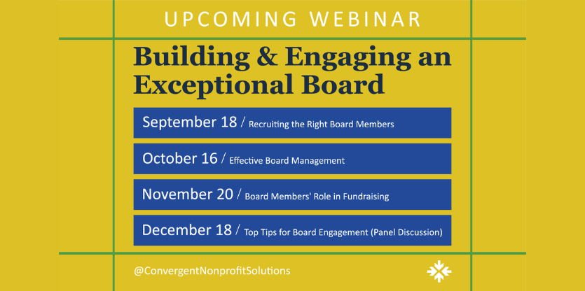 Strong, engaged boards are essential to advancing your mission. This interactive webinar series is designed to help nonprofit leaders and board members recruit strategically, govern effectively, fundraise confidently, and stay engaged year-round.